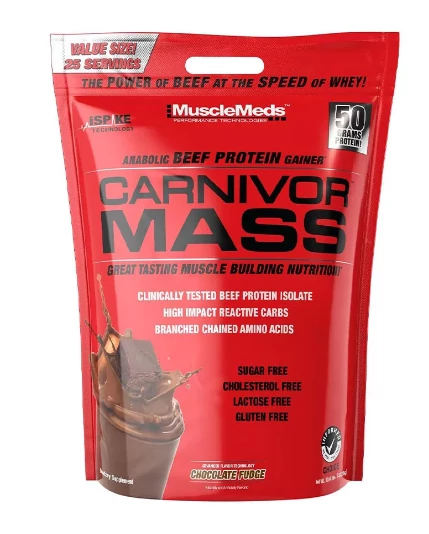 Marhahús-fehérje Izolátum: a marhahús, mint anabolikus fehérjeforrás már bizonyított az évszázadok során. A MuscleMeds az első cég, amely a marhahús-fehérjét sejtkörnyezetéből izolálva kínálja a testépítőknek, így megadja a lehetőséget a vér aminosav és inzulin szintjének a sokkal gyorsabb emelkedésére – összehasonlíthatatlanul jobb eredményt produkálva ezzel, mint a tejsavó. A MuscleMeds marhahús fehérje izolátum (BPI) 350%-kal több koncentrált fehérjét tartalmaz, mint a szték vagy a tejsavó, és nincs benne sem zsír, sem pedig koleszterol. Ráadásul tovább erősítettük: 5 gramm kreatin és BCAA-k hozzáadásával a még nagyobb anabolikus erővel rendelkezik! A CARNIVOR MASS segítségével megkapod a marhahús-fehérje testtömegnövelést segítő előnyeit, a tejsavó sebességével együtt, ráadásul a laktóz, allergiák és más problémák nélkül, amelyeket sokszor a tejtermékek használatával kapcsolnak össze.
