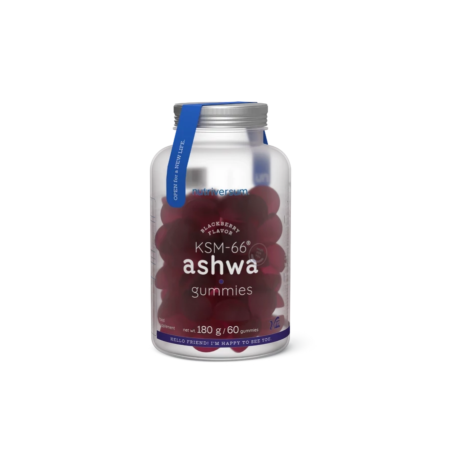 Összetevők: édesítőszerek (maltit folyadék, maltit, izomalt, szorbit folyadék, eritrit), zselésítő anyag (pektin), étkezési savak (citromsav, almasav), Ashwagandha (Withania somnifera dunal) gyökérkivonat KSM-66® (5% witanolid és 0,1% withaferin a- tartalomra standardizálva), aroma, lila répalé (Daucus carota l.) koncentrátum, fényező anyagok (növényi olaj, karnauba viasz).