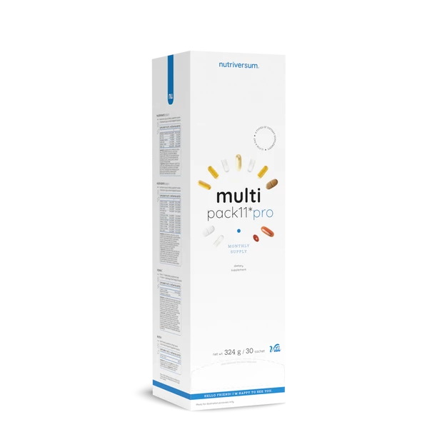 A Multi Pack 11 PRO egy kiemelten magas dózisú multivitamin-, ásványi anyag- és nyomelem-komplex, összesen 13 féle vitaminnal, 8 fajta ásványi anyaggal, illetve Omega 3, Lecitin és Q10 tartalommal a legelszántabbak részére.