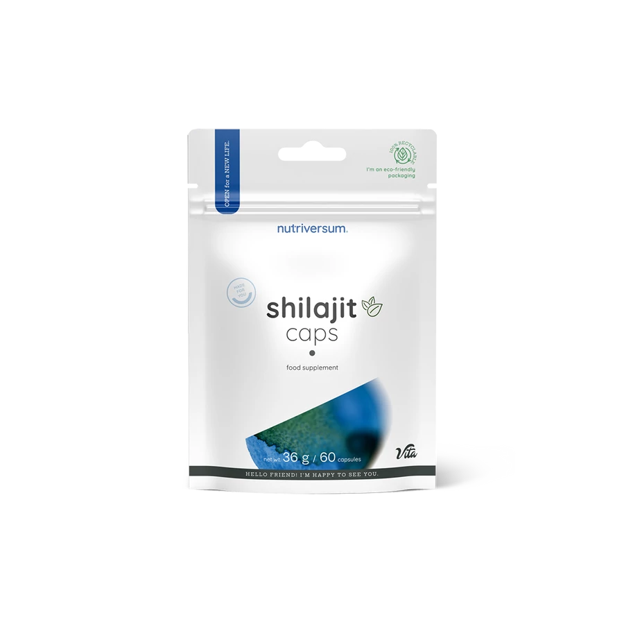 Összetevők: shilajit kivonat (50% fulvosav), kapszulahéj [hidroxipropil-metil-cellulóz, színezék (kalcium-karbonát)], térfogatnövelő anyag (mikrokristályos cellulóz), csomósodást gátló anyagok (szilícium-dioxid, zsírsavak magnéziumsóI).