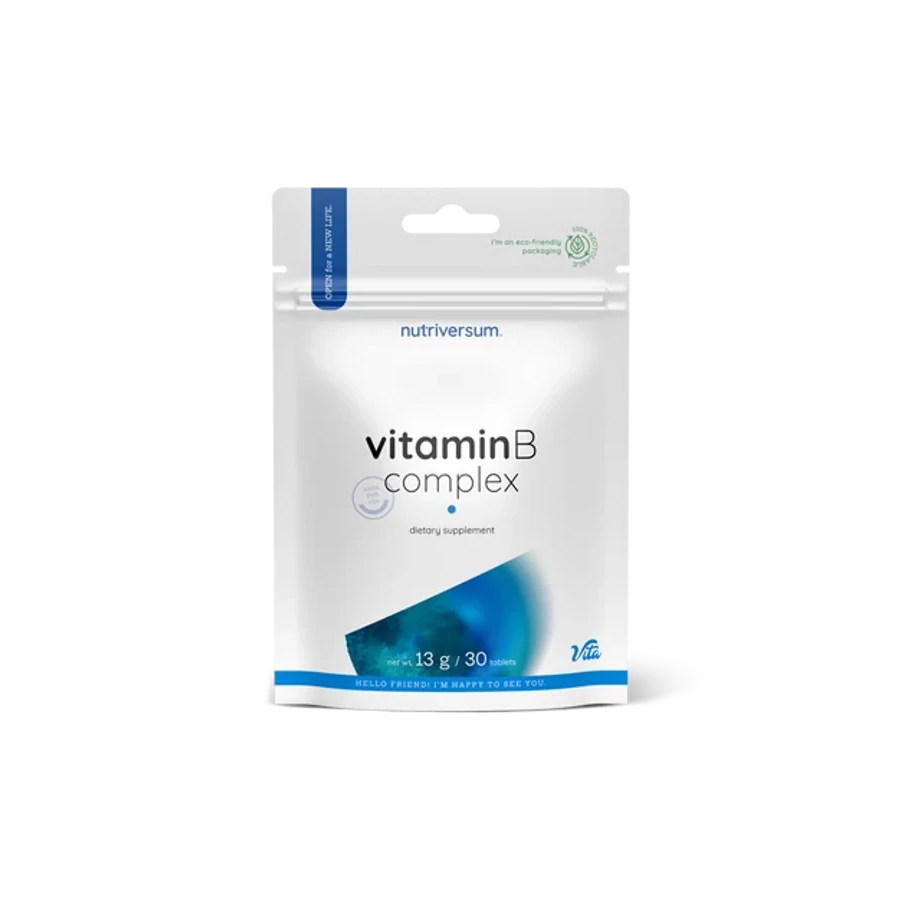 A Nutriversum VITA- B-Complex 7 féle B-vitamint tartalmaz, amelyet biotinnal (H-vitamin) egészítettük ki, a teljes komplexitás jegyében.