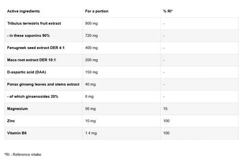 Az OstroVit Testo Booster-ben található összetevők tulajdonságai: